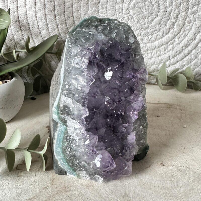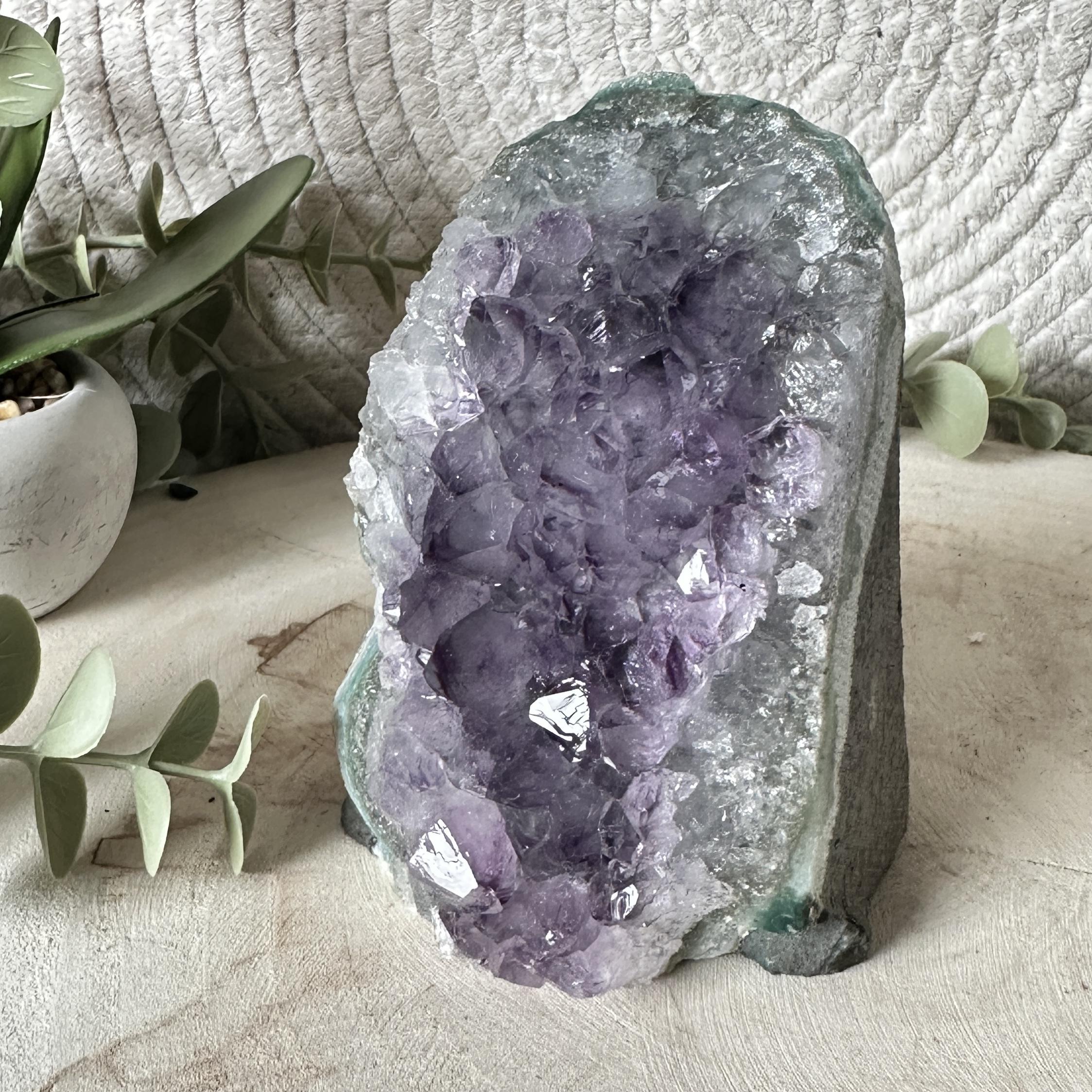 Laat de energie van rust en bescherming in je ruimte stromen met deze prachtige Amethist Cutbase.
