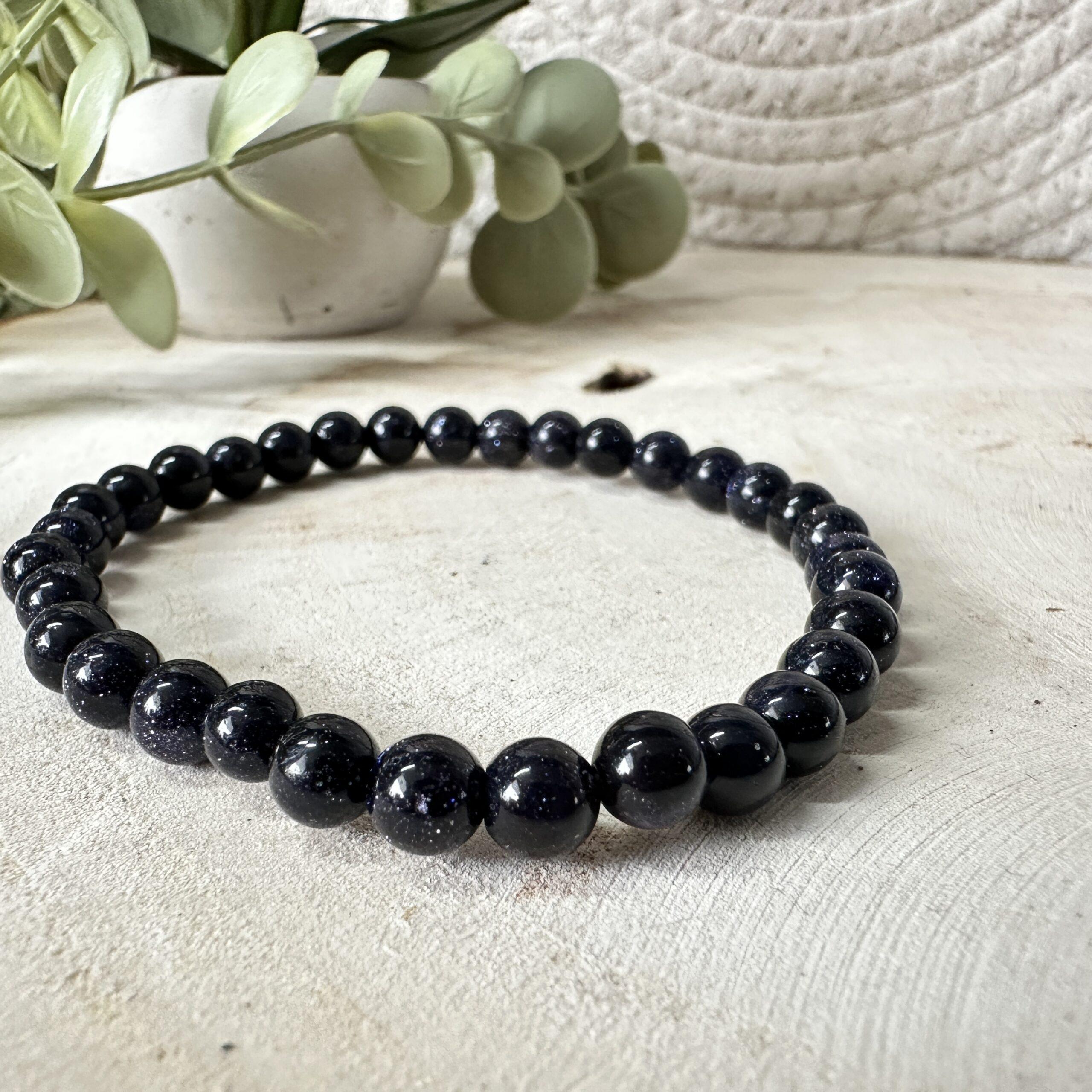 Laat je betoveren door de diepe nachtblauwe glans van deze Blauwe Goudsteen kralenarmband van 6 millimeter.