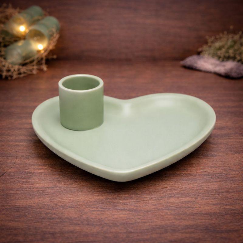 De schaal is gemaakt van stevig materiaal en heeft een gladde afwerking. De geïntegreerde houder biedt een stabiele plek voor het branden van palo santo, terwijl het hartvormige oppervlak ruimte biedt om as veilig op te vangen. Dit maakt de schaal geschikt voor dagelijks gebruik, maar ook voor speciale rituelen waarbij reiniging en intentie centraal staan. De pastelgroene kleur draagt bij aan een kalme sfeer en laat zich gemakkelijk combineren met andere spirituele accessoires.